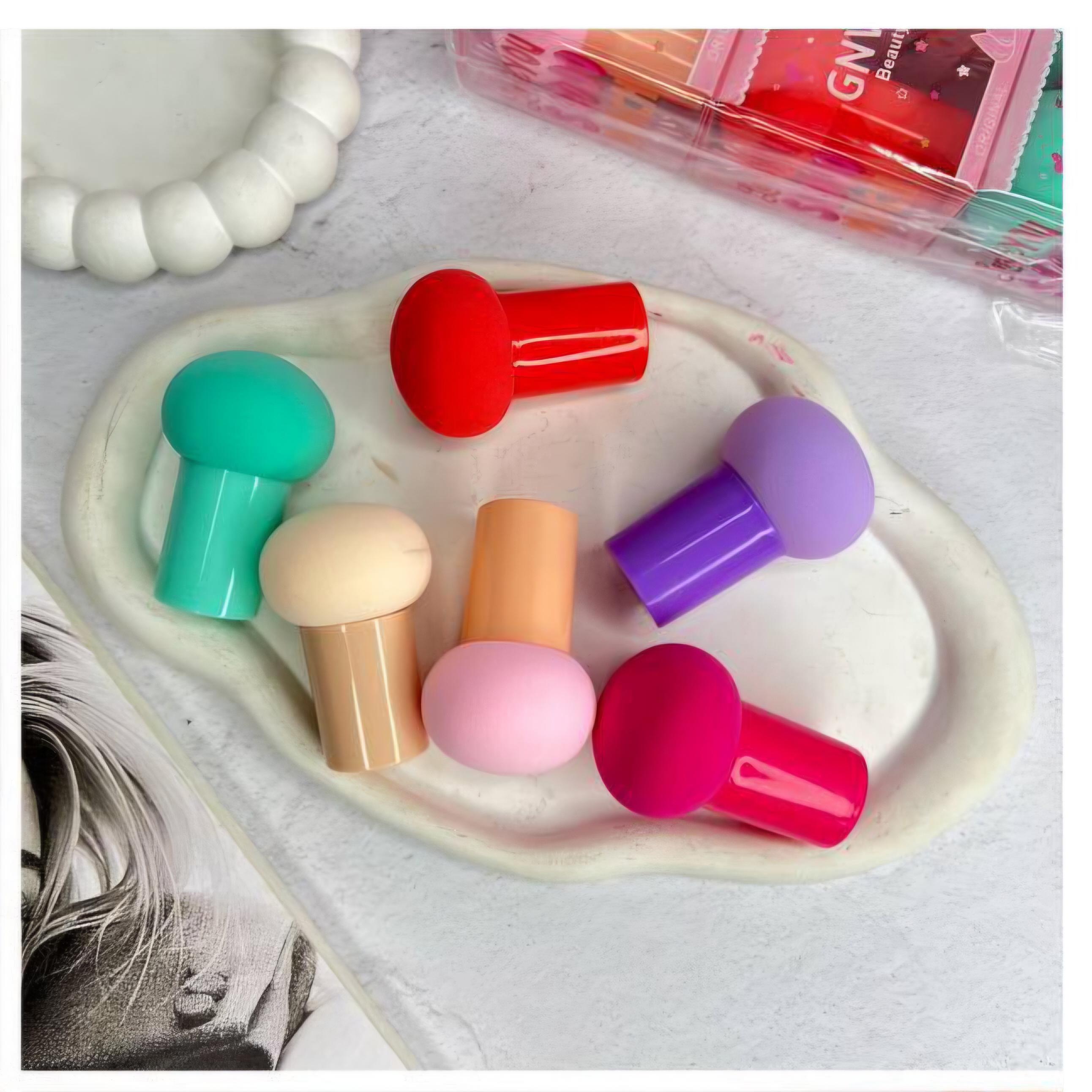 نکته: بسیاری از «کوشنها» (Cushion Foundation) در بستهبندی خود یک پد قارچی کوچک دارند، چون این پد بهترین ابزار برای پخش کردن محصولات مایع و رقیق است.