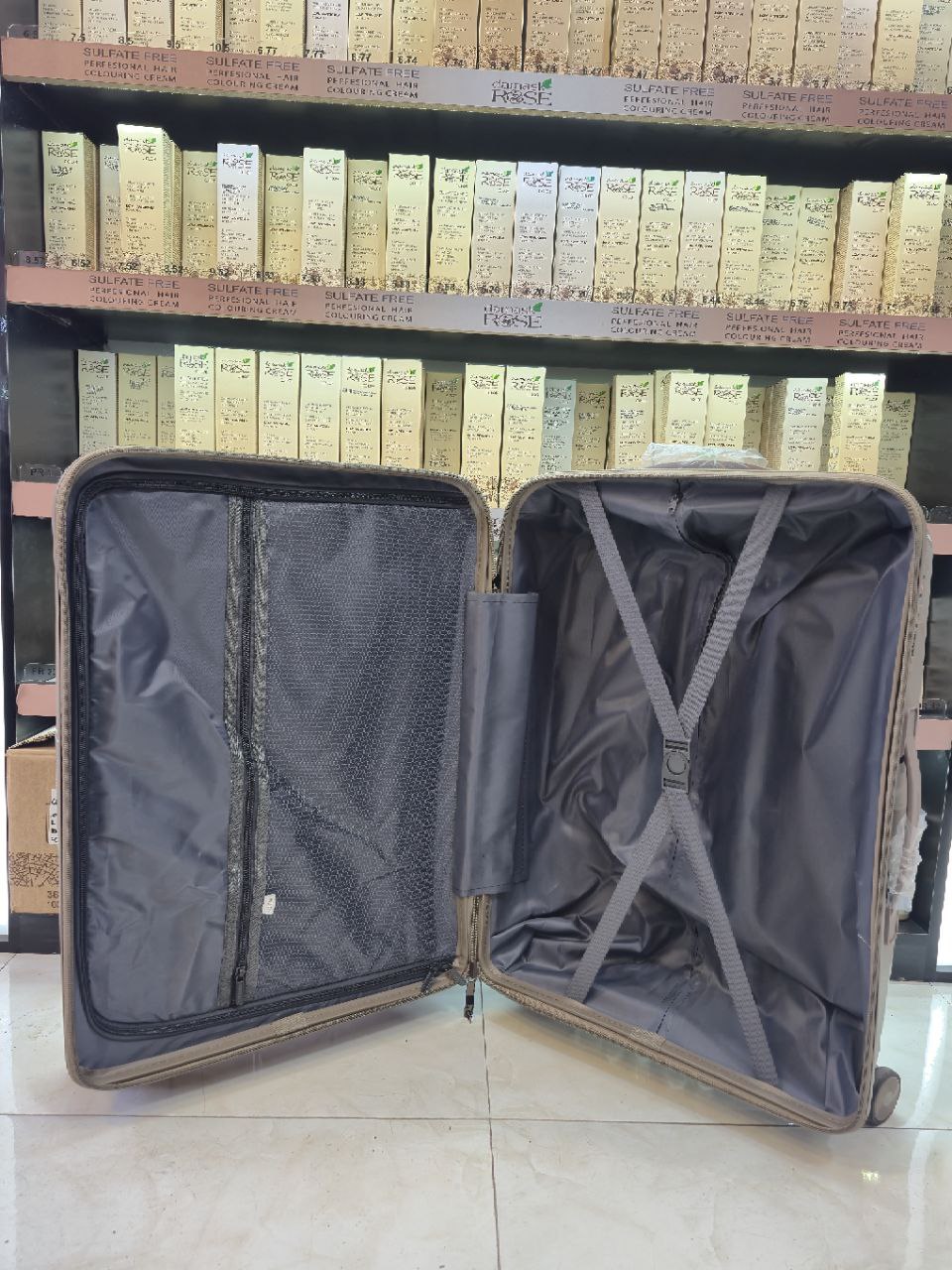 تقسیمبندی داخلی: در این سایز معمولاً هر دو طرف چمدان دارای محفظه جداگانه (یک طرف با زیپ پارچهای و یک طرف با کش نگهدارنده) است که نظمدهی به لباسها را آسان میکند.